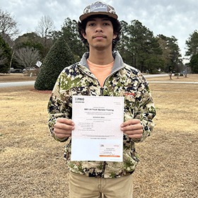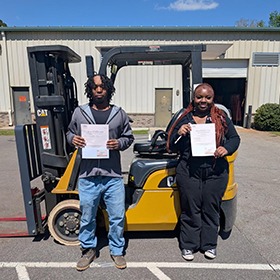 On Saturday, March 28, 2026, Rodney Lamont, Pender High School, and Tanasia Bland, Pender Early College High School, earned their forklift certification.